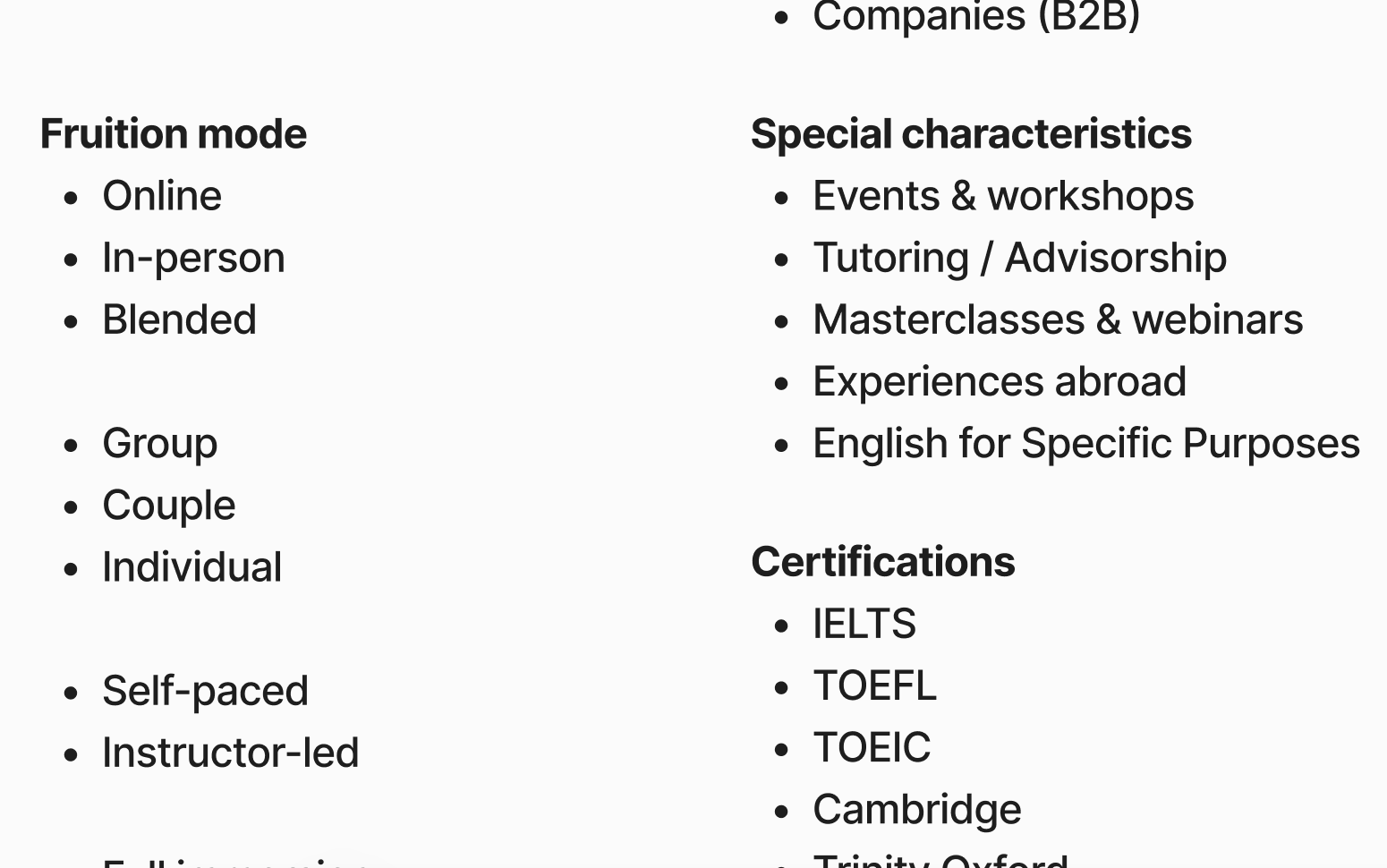 A partire dai dati raccolti, abbiamo sviluppato una strategia di prodotto mirata, identificando le aree di miglioramento e le opportunità di innovazione, allineando l'offerta educativa con le reali esigenze delle persone.